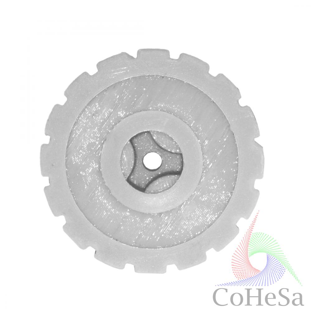 Шестерня - деталь механизма зубчатой передачи, применяется в различных видах техники с древних времен. Выполняет функцию передачи движения с помощью зацепления зубьев соседних шестерен. Для бытовой техники шестерни выполняются из высокопрочной пластмассы, но при длительной и значительной нагрузке могут выйти из строя. Предлагаем заменить сломавшуюся шестерню новой деталью производства COHESA.