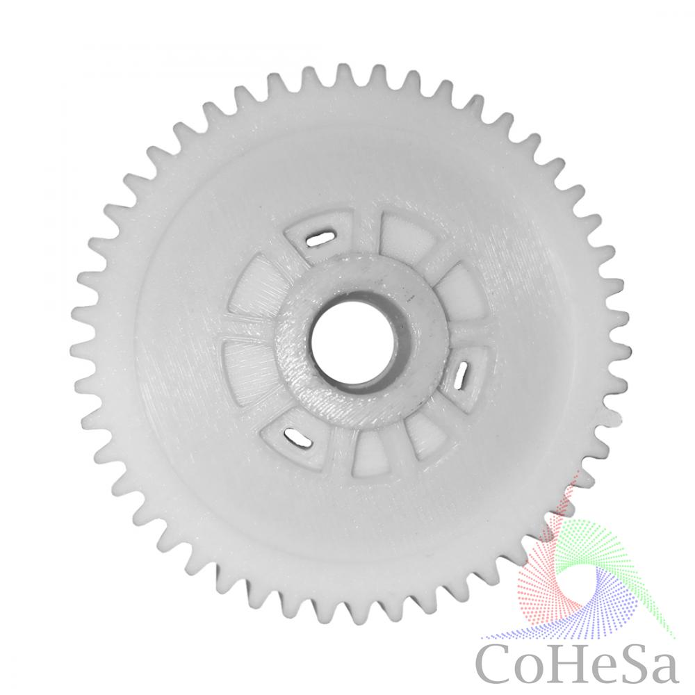 Шестерня - деталь механізму зубчастої передачі, застосовується в різних видах техніки з давніх часів. Виконує функцію передачі руху за допомогою зачеплення зубів сусідніх шестерень. Для побутової техніки шестерні виконуються з високоміцної пластмаси, але при тривалому і значному навантаженні можуть вийти з ладу. Пропонуємо замінити зламану шестерню новою деталлю виробництва COHESA.