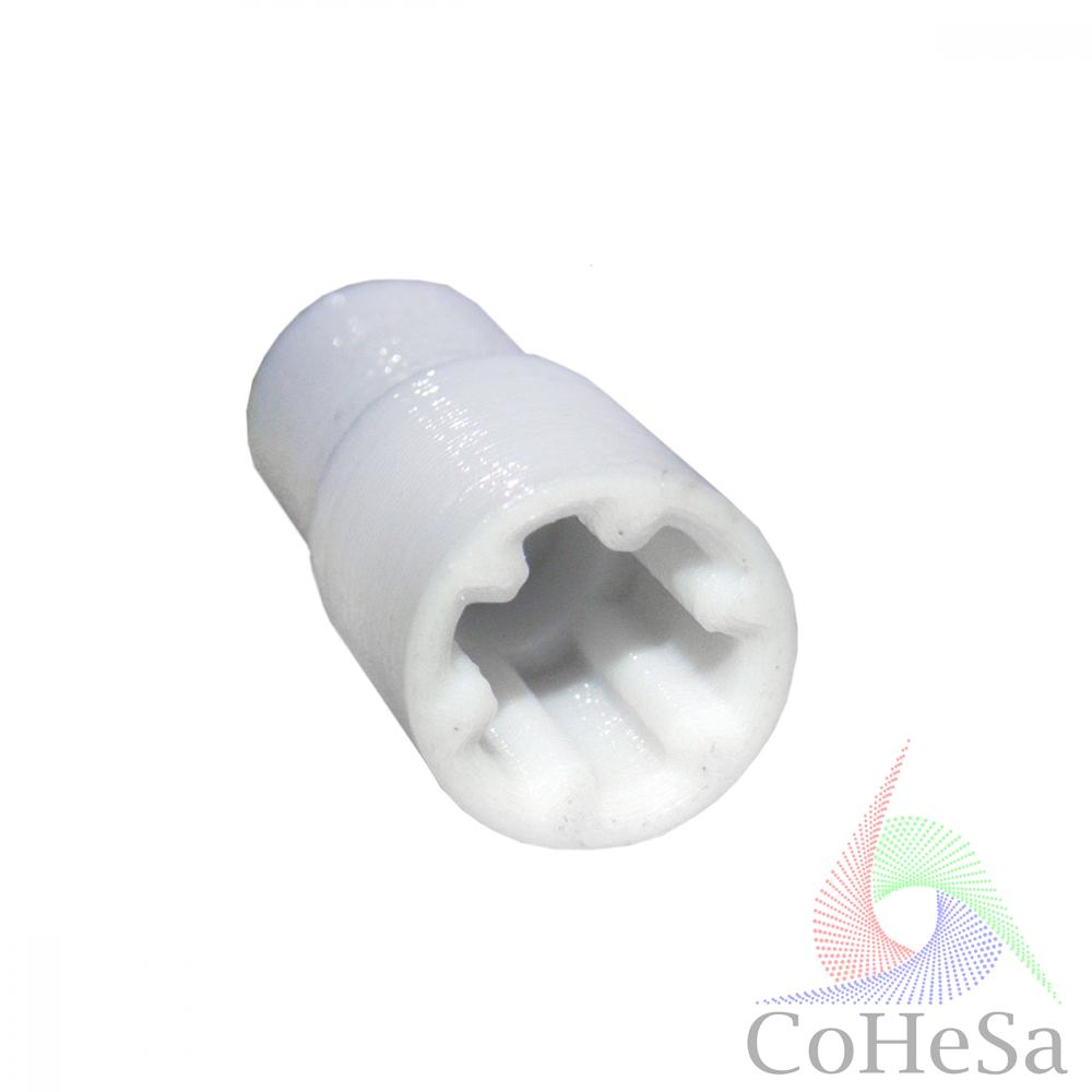 Является одновременно предохранительной муфтой – при перегрузке выходит из строя в первую очередь для предотвращения поломки двигателя. По этой причине изготавливается из пластика – замена пластиковой муфты обойдется дешевле замены двигателя.