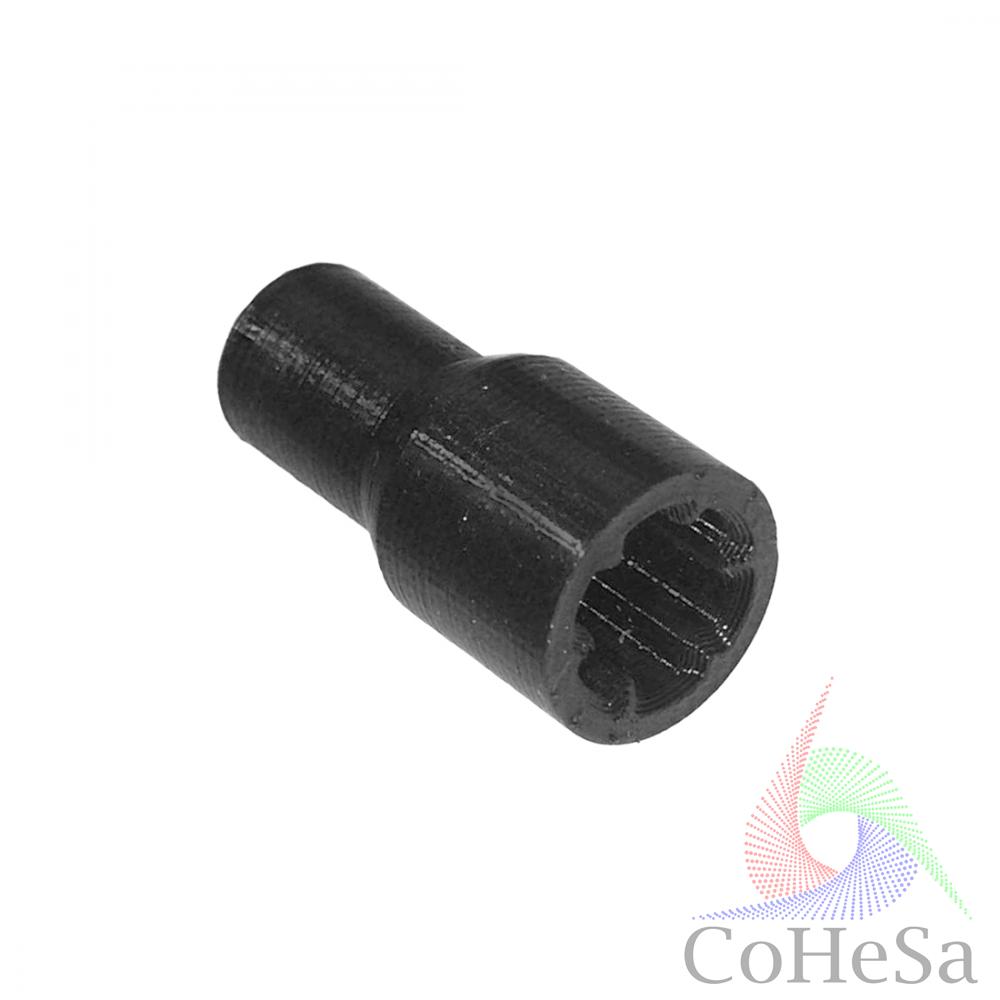 Является одновременно предохранительной муфтой – при перегрузке выходит из строя в первую очередь для предотвращения поломки двигателя. По этой причине изготавливается из пластика – замена пластиковой муфты обойдется дешевле замены двигателя.