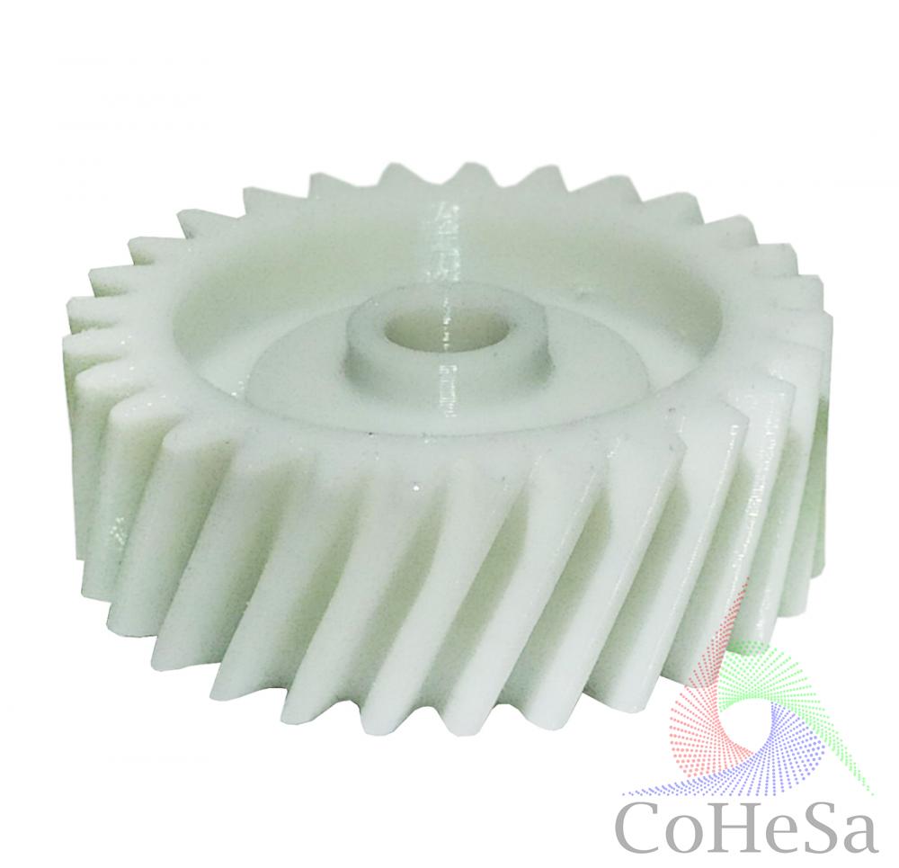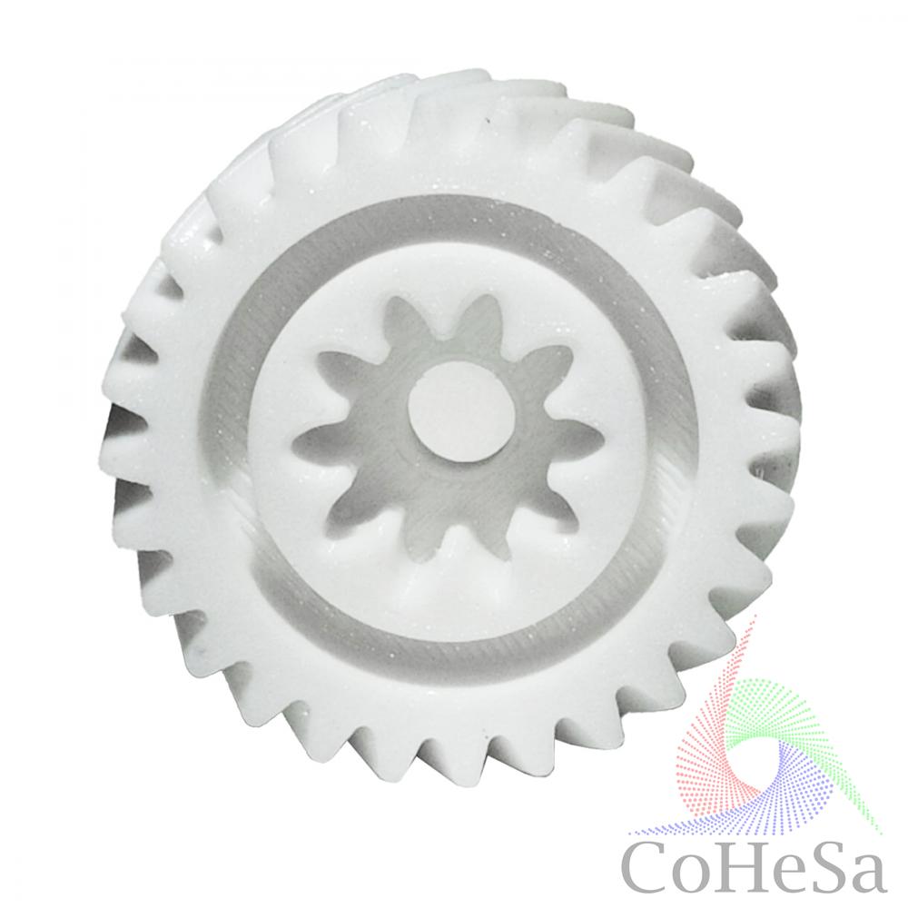 Шестерня - деталь механізму зубчастої передачі, застосовується в різних видах техніки з давніх часів. Виконує функцію передачі руху за допомогою зачеплення зубів сусідніх шестерень. Для побутової техніки шестерні виконуються з високоміцної пластмаси, але при тривалому та значному навантаженні можуть вийти з ладу. Пропонуємо замінити зламану шестерню новою деталлю виробництва COHESA.