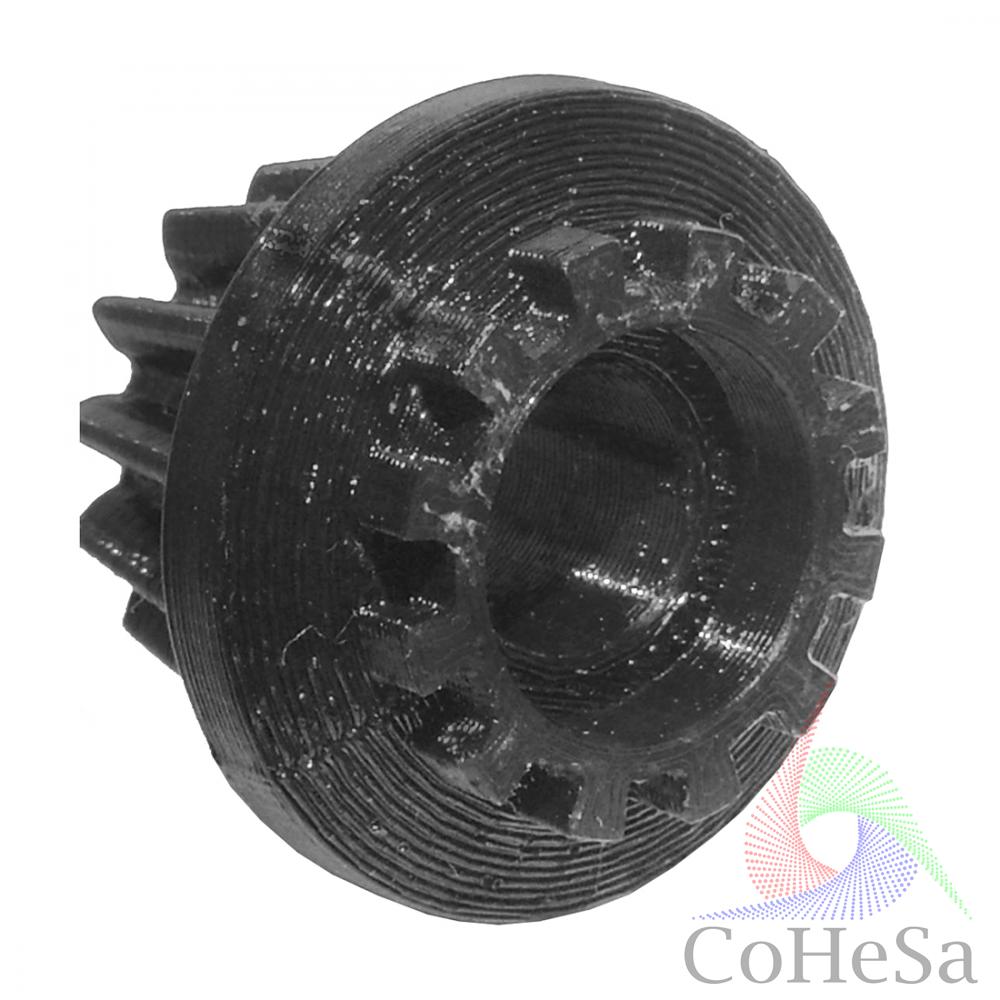 Шестерня - деталь механізму зубчастої передачі, застосовується в різних видах техніки з давніх часів. Виконує функцію передачі руху за допомогою зачеплення зубів сусідніх шестерень. Для побутової техніки шестерні виконуються з високоміцної пластмаси, але при тривалому і значному навантаженні можуть вийти з ладу. Пропонуємо замінити зламану шестерню новою деталлю виробництва COHESA.