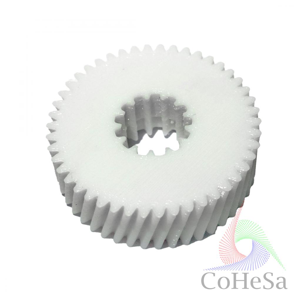 Шестерня - деталь механізму зубчастої передачі, застосовується в різних видах техніки з давніх часів. Виконує функцію передачі руху за допомогою зачеплення зубів сусідніх шестерень. Для побутової техніки шестерні виконуються з високоміцної пластмаси, але при тривалому і значному навантаженні можуть вийти з ладу. Пропонуємо замінити зламану шестерню новою деталлю виробництва COHESA.